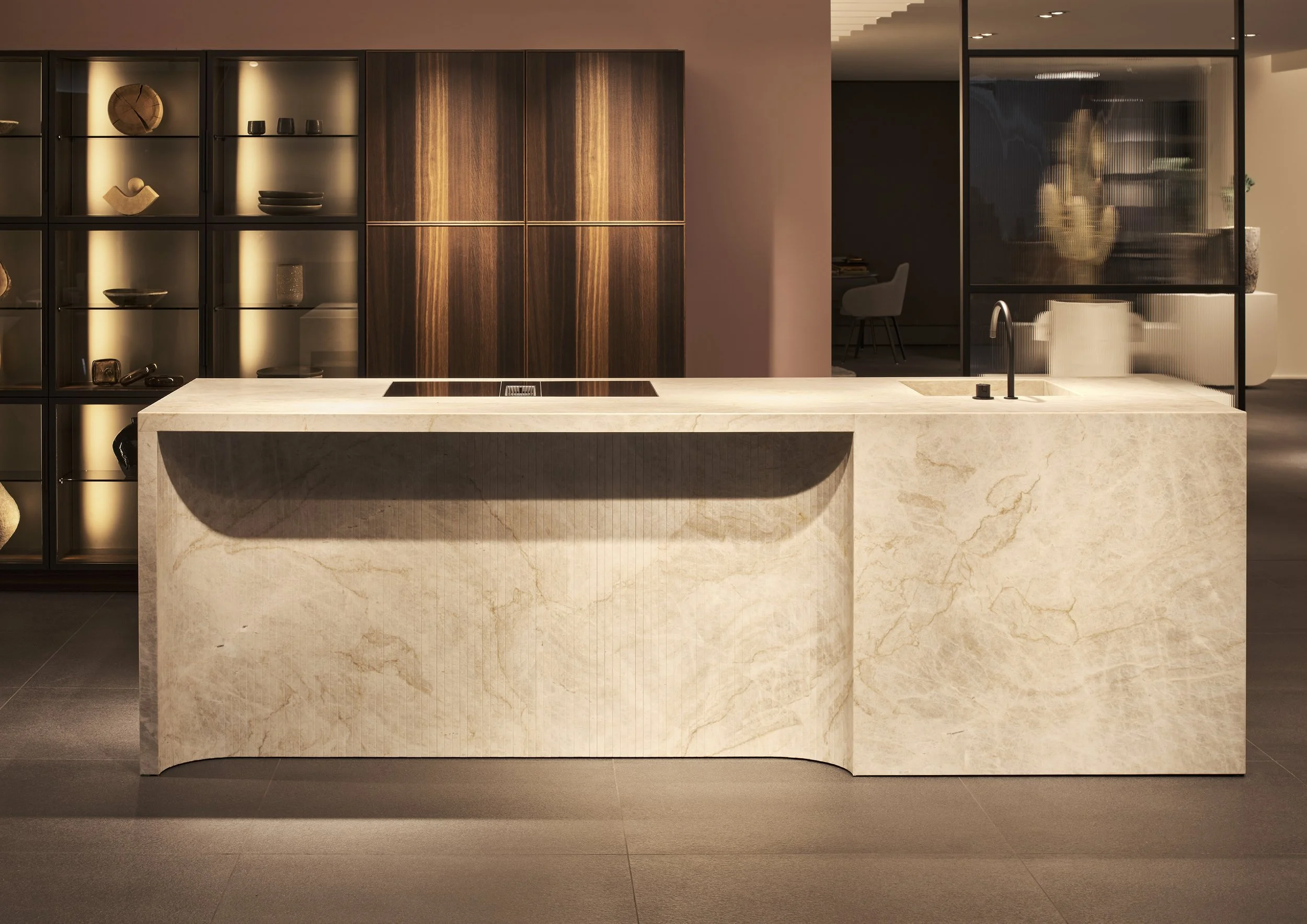 Unexpected. Surprising. And yet as if it has always been there. A custom kitchen that fits into any life and yet stands out due to its uniqueness. Wood, metal, ceramics, hot, cold, smooth, suspended. Hard to put into words, but intuitively understandable, tangible, palpable. A kitchen which can do a lot and you can do a lot with it.